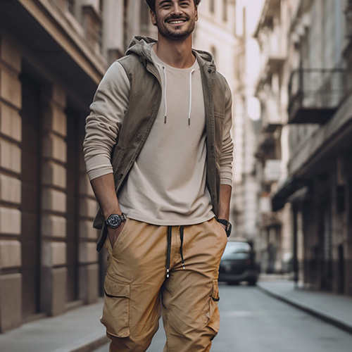 Man Lightweight Cargo Jogger Pants Slim Fit Khaki